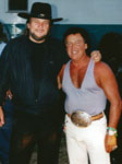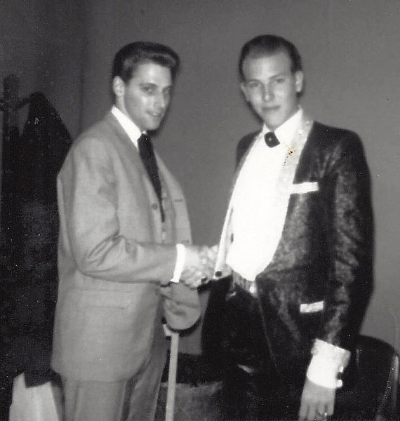 1988 Ottawa Valley Country Music Hall Fame inductee Ralph Carlson (L) greets Hank Williams, Jr. backstage at a May, 1964 show staged at the Ottawa Coliseum.