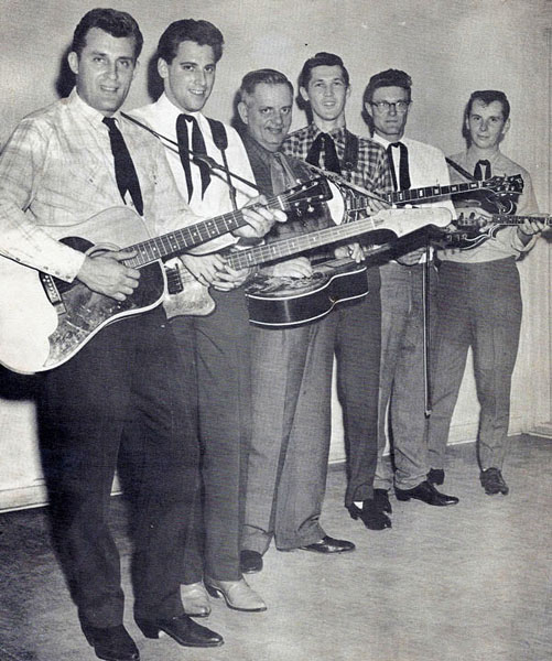 Ron McMunn and The Country Cousins (circa 1964). (L/R) Ron McMunn, Ralph Carlson, Garnie Scheel, Lloyd Grant, John Chamberlain, Don O'Neill. Photo was taken at CJET radio station in Smiths Falls, Ontario, where Ron McMunn & The Country Cousins broadcast a live weekly radio show during the early 1960’s.