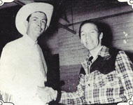 Canadian country legend Hank (Lariviere) Rivers (R) welcomes Nashville legend Hank Williams backstage at the Ottawa Auditorium. Hank Williams’ first and only Ottawa showdate took place May 8, 1951. General admission price for the show was $2.00. Hank Rivers was inducted into the Ottawa Valley Country Music Hall Of Fame in 1984.